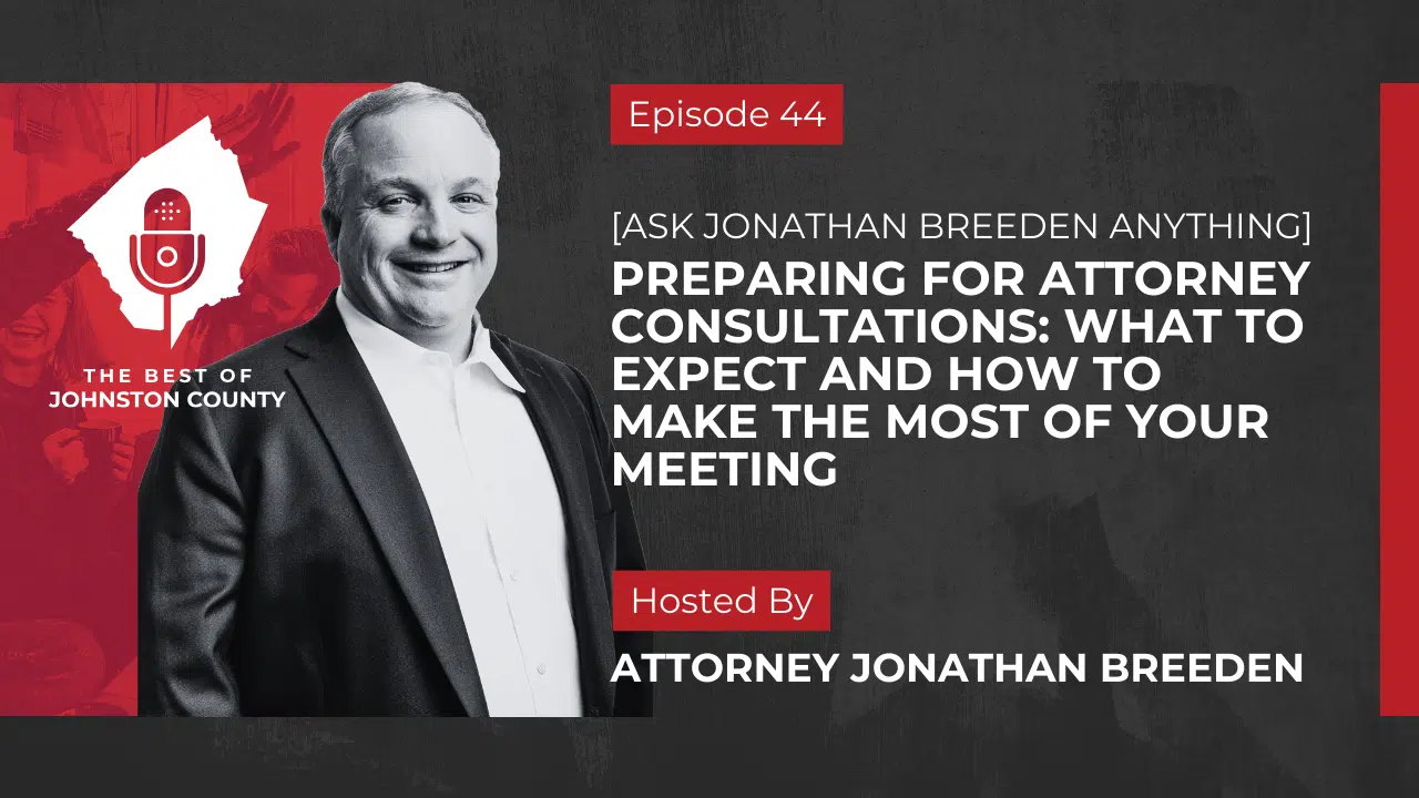 Welcome to another special edition of The Best of Johnston County Podcast, an episode in our series known as “Ask Jonathan Breeden Anything.” In this insightful episode, we dive deep into a topic that many find daunting—attorney consultations. Raena Burch, the social media coordinator at Breeden Law Office, joins to ask detailed questions about the consultation process, particularly useful for those embarking on a divorce journey.